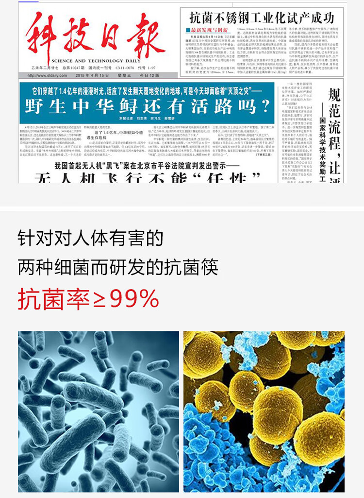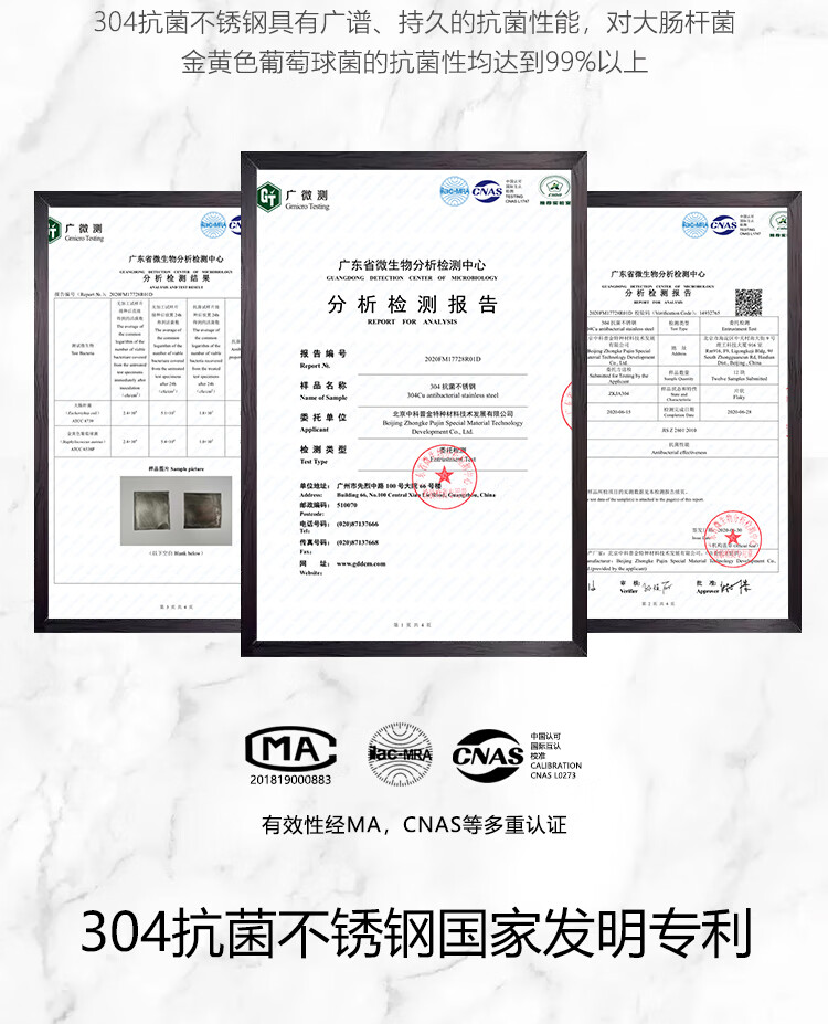 來源標題:海底撈一門店筷子檢出大腸菌群 杭州市市場監(jiān)督管理局近日發(fā)布的關(guān)于21批次不合格食品情況的通告顯示,杭州撈派餐飲有限公司第十五分公司(海底撈火鍋杭州富春新天地店)使用的1批次筷子檢出大腸菌群不合格。產(chǎn)品信息顯示,其生產(chǎn)(購進)日期為今年4月29日。 據(jù)介紹,大腸菌群是國內(nèi)外通用的食品污染常用指示菌之一。造成餐飲具中的大腸菌群超標的主要原因是二次污染,如餐飲具沒有定期清洗消毒,或餐具干熱消毒時未達到規(guī)定的時間和溫度。操作人員在上完衛(wèi)生間后洗手不徹底,個人衛(wèi)生狀況未達標,直接影響最終產(chǎn)品的衛(wèi)生狀況。如果使用大腸菌群超標的餐具,會引起腹瀉、腸胃感染等。 今天就給大家推薦一款中科院研發(fā)的專利產(chǎn)品—極態(tài)抗菌筷!極態(tài)抗菌筷是一款真正的專利筷!是中科院研究18年的成果,不是普通304或316不銹鋼的材質(zhì)哦~極態(tài)抗菌筷的材質(zhì)是一種兼具結(jié)構(gòu)、耐蝕、抗菌為一體的新型材料!